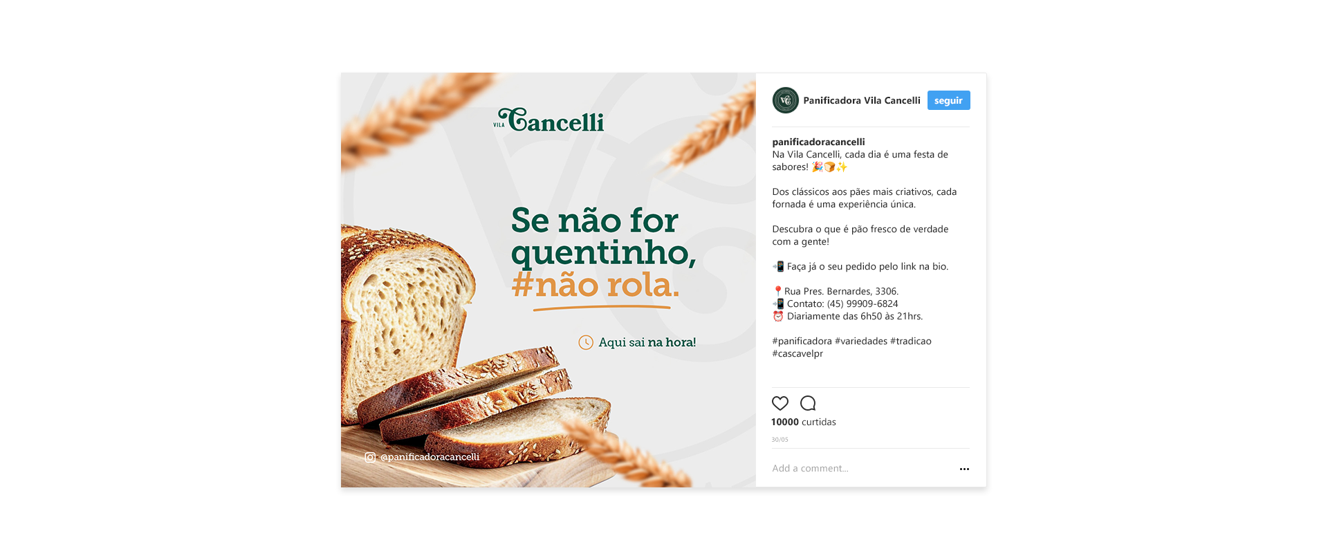 Esse case para a panificadora Cancelli destacou a eficácia de uma abordagem integrada para aumentar a visibilidade e as vendas. Nas redes sociais, foram realizadas campanhas visuais envolventes no Instagram e Facebook, mostrando o processo de fabricação dos pães e promoções especiais. A panificadora também investiu em publicidade paga direcionada localmente, atraindo novos clientes para a loja.